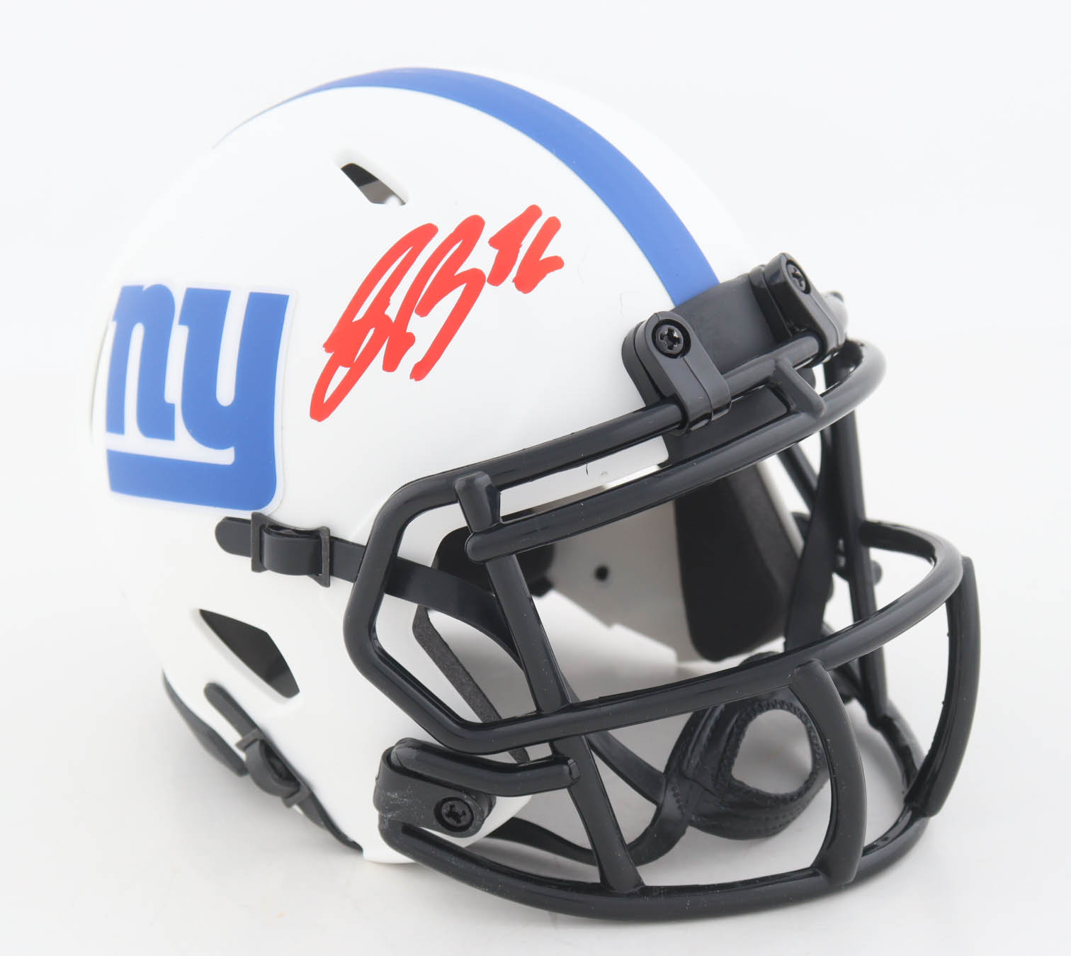 Riddell New York Giants Camo Alternate Speed Mini Helmet. Hand-signed by Saquon Barkley.