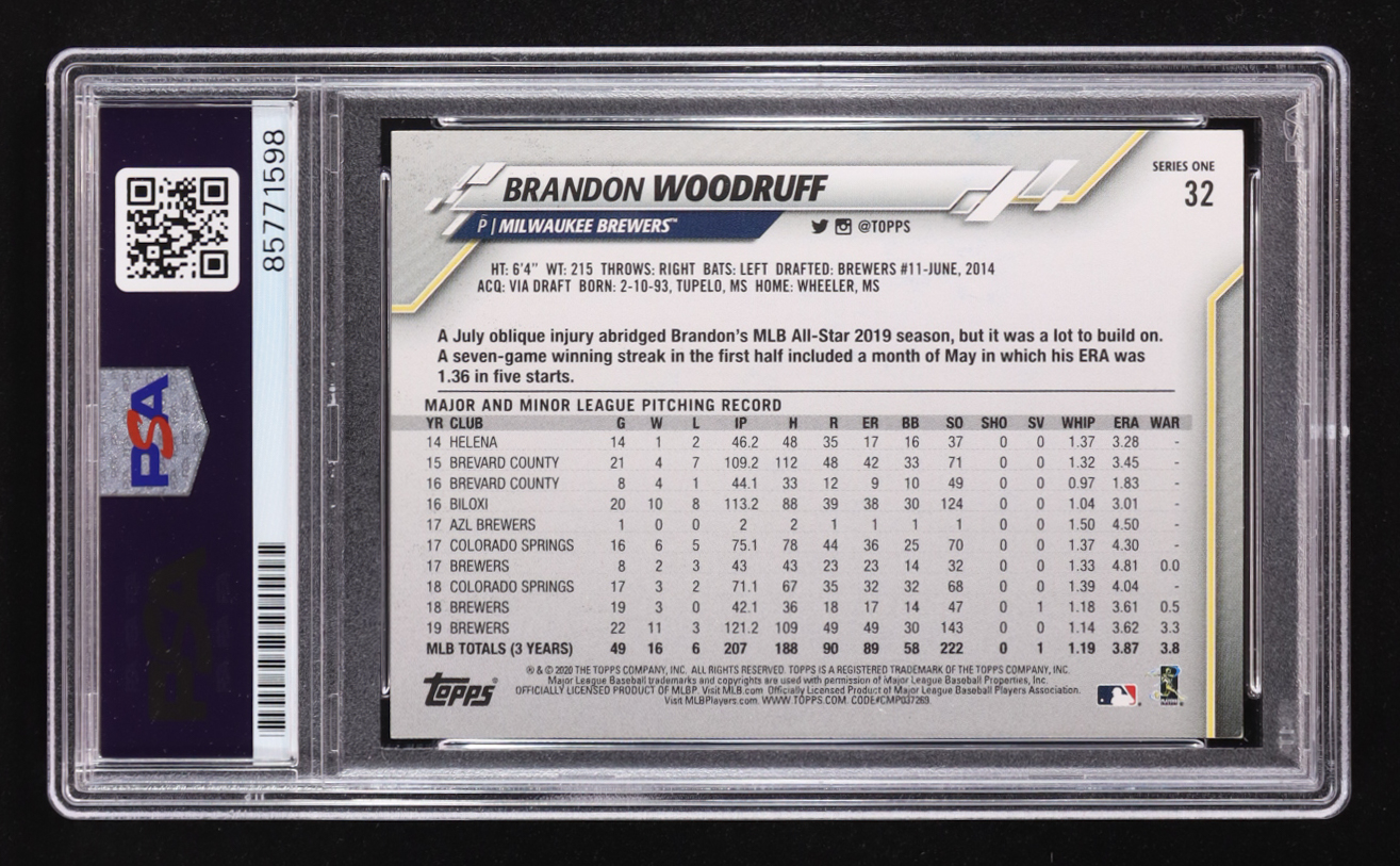 Brandon Woodruff Signed 2020 Topps Series One #32 (PSA | Autograph Graded PSA 10)