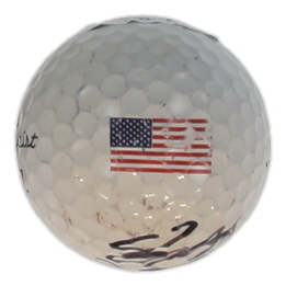 Titleist 1 Golf Ball has been hand-signed by John Daly. Please note, the signature has been smudged and there are stains and scuffing throughout the golf ball.