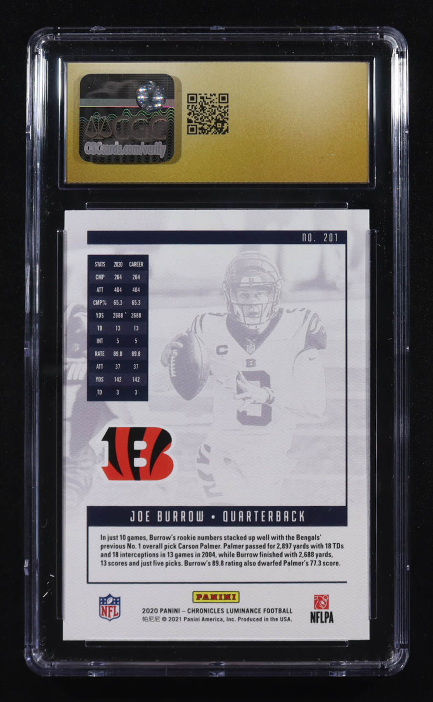 Joe Burrow 2020 Panini Luminance #201 Chronicles RC (CGC 10 | Pristine Black Label)