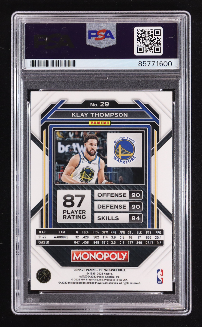Klay Thompson Signed 2022-23 Panini Prizm Monopoly #29 (PSA)