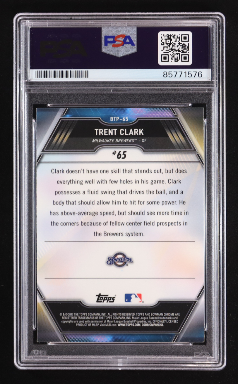 Trent Clark Signed 2017 Topps Bowman Chrome Scouts Top 100 #BTP-65 RC (PSA)