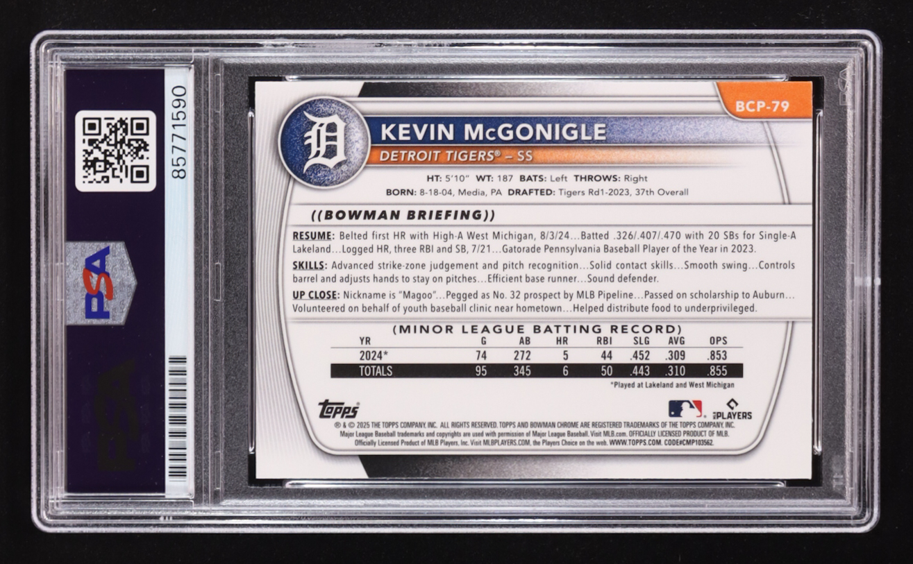 Kevin Mcgonigle Signed 2025 Bowman Chrome Prospects Mega #BCP-79 RC (PSA)