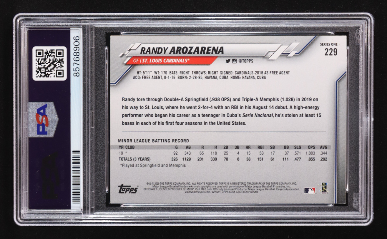 Randy Arozarena Signed 2020 Topps Series One #229 RC (PSA | Autograph Graded PSA 10)