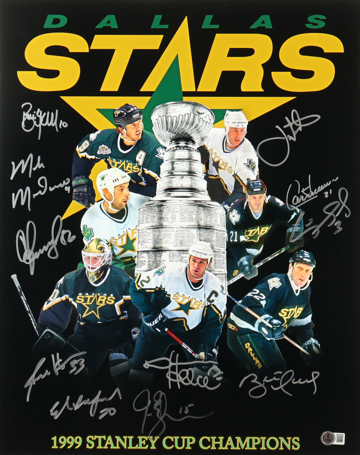 1999 Stars Stanley Cup Champions 16x20 Photo Signed By (11) with Mike Modano, Brett Hull, Joe Nieuwendyk, Ed Belfour (Beckett)