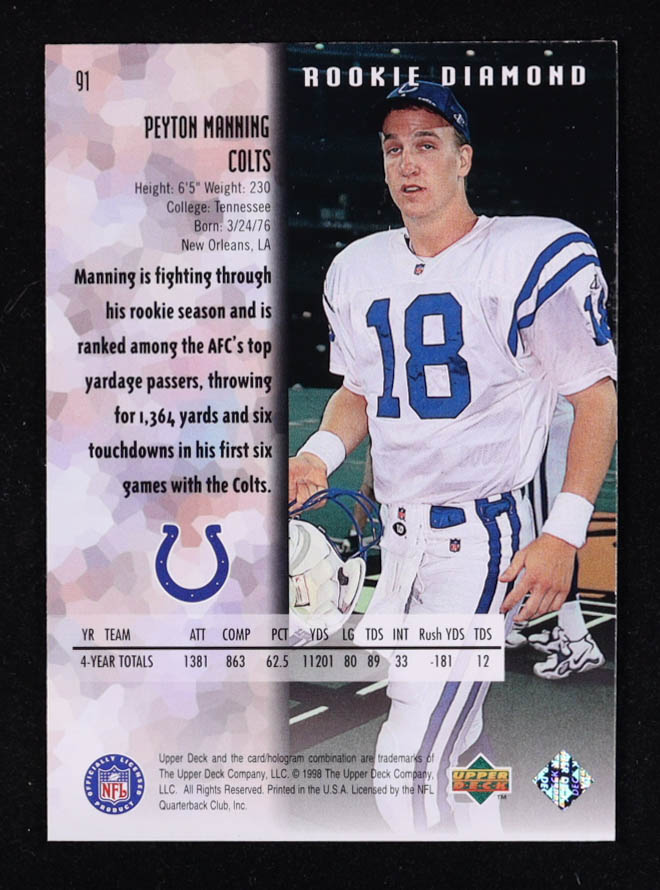 Peyton Manning 1998 Black Diamond Rookies #91 RC