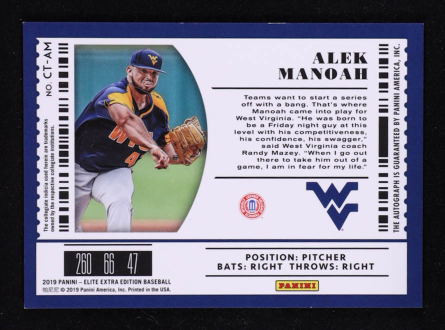 Alek Manoah 2019 Elite Extra Edition College Tickets Signatures Holo #8 RC