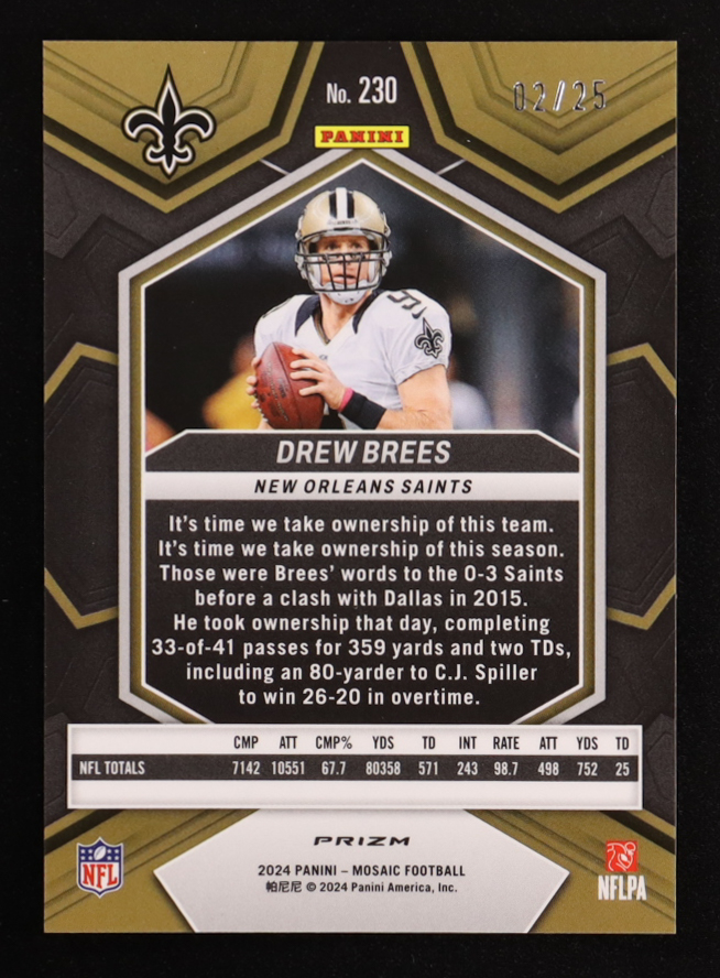 Drew Brees 2024 Panini Mosaic Mosaic Orange Fluorescent #230 #02/25