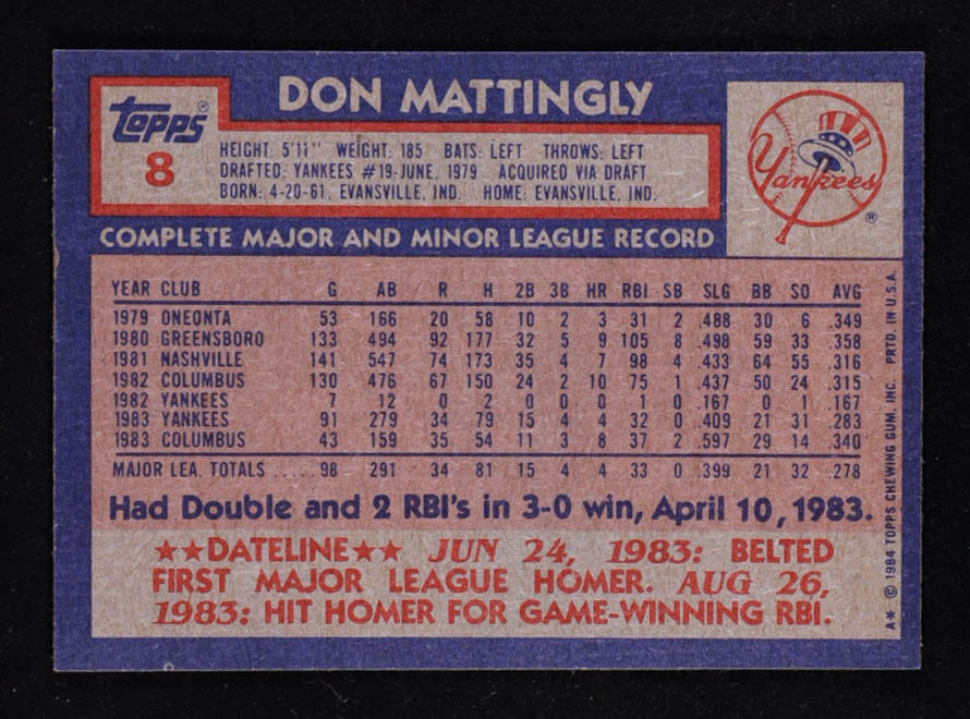 Don Mattingly 1984 Topps #8 RC
