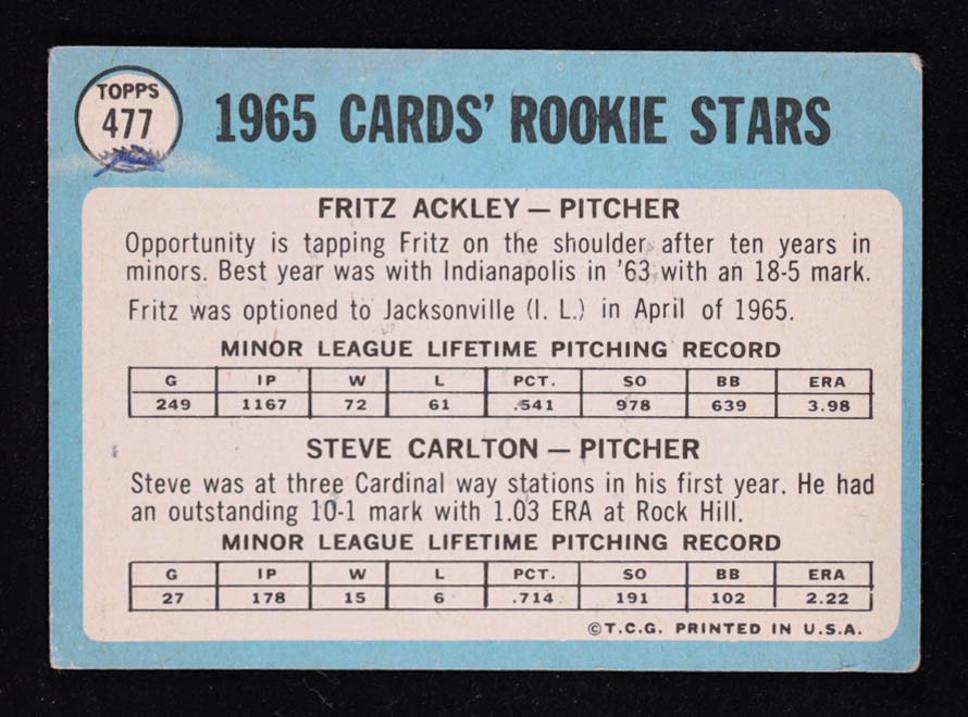 Fritz Ackley / Steve Carlton 1965 Topps Rookie Stars #477 RC