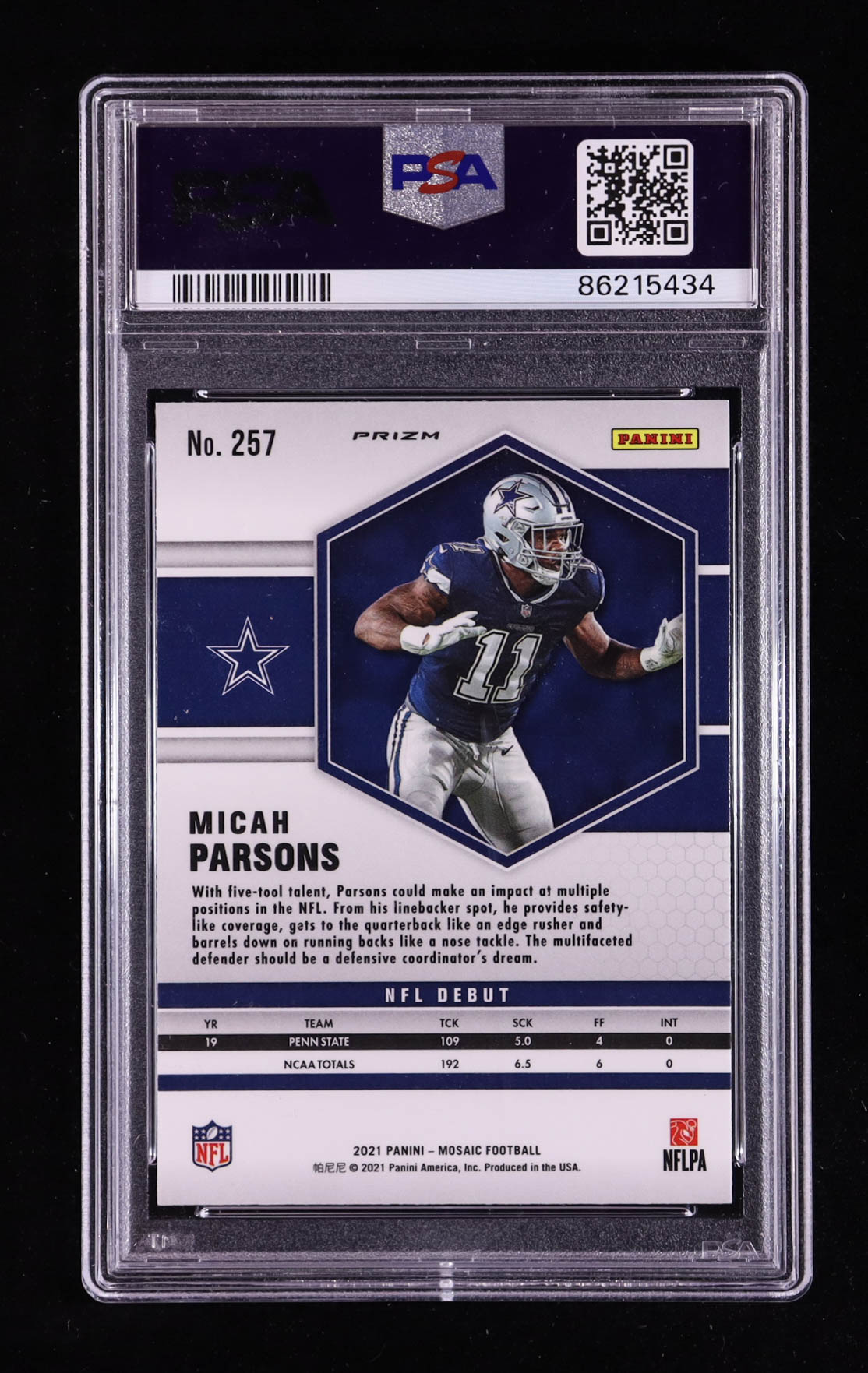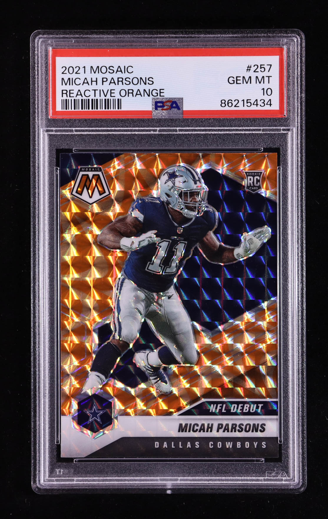 Micah Parsons 2021 Panini Mosaic Mosaic Reactive Orange #257 DEB RC (PSA 10)