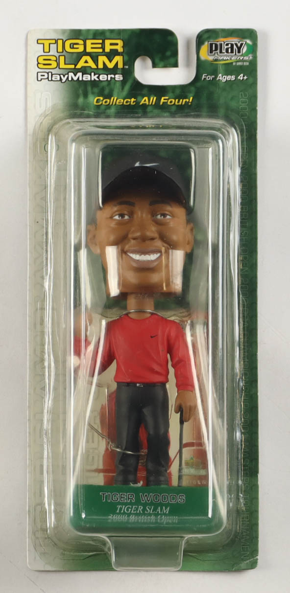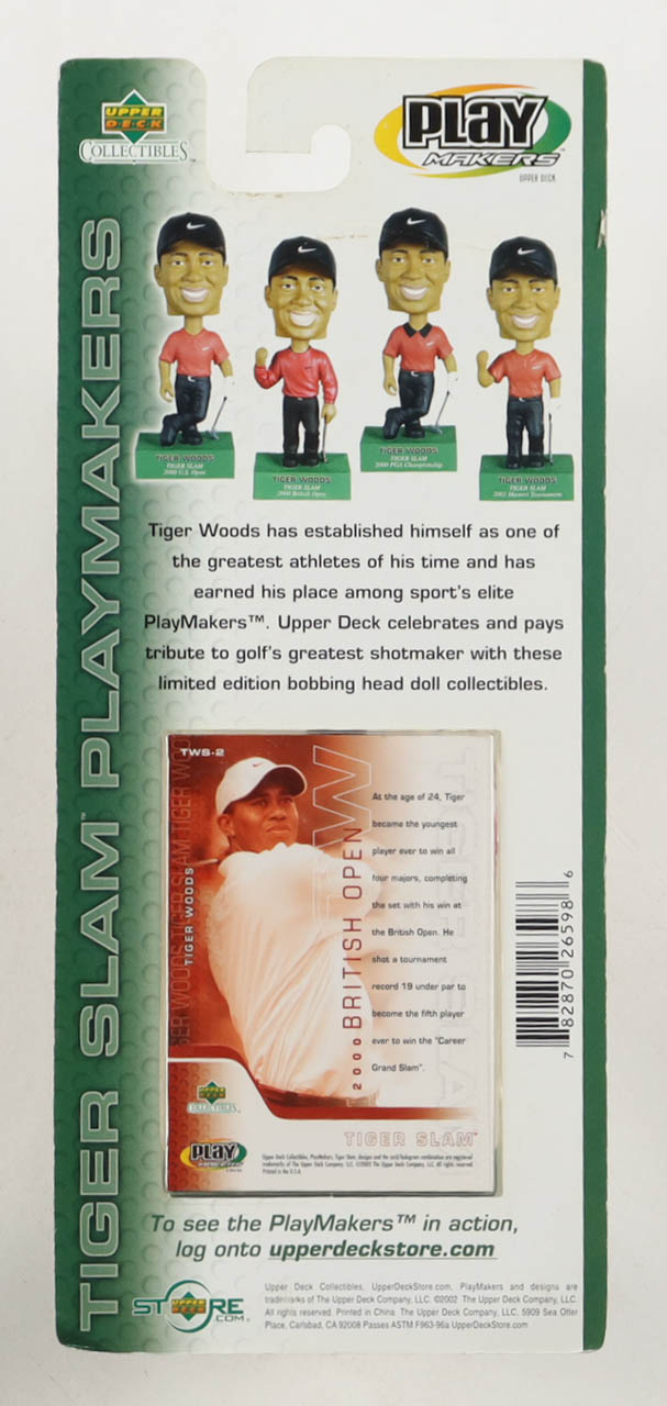 Upper Deck Playmakers Tiger Woods Special Edition Bobblehead comes factory sealed in original packaging as shown. Upper Deck trading card is included with figure. Please note, the bobble head is unsigned and there is scuffing on the packaging.