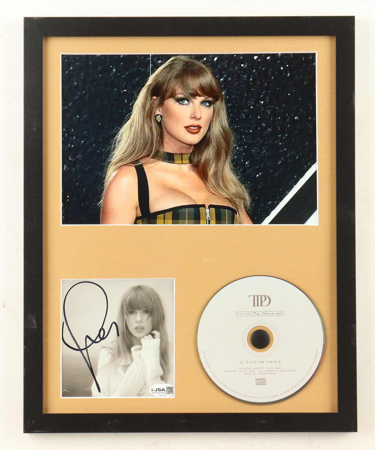 Custom frame measures approximately 12" x 15" in size. Features a "The Tortured Poets Department" CD insert that has been hand-signed by Taylor Swift and includes the disc as shown.