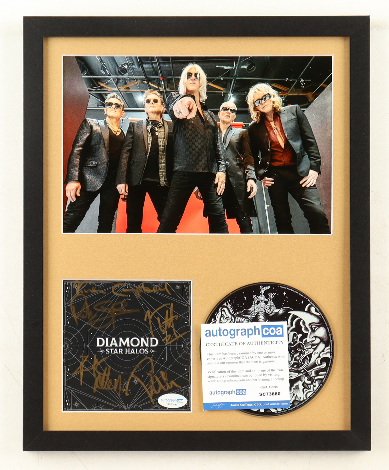 "Def Leppard" Custom Framed "Diamond Star Halos" CD Album Insert Display with Disc Band-Signed By (5) with Joe Elliott, Rick Savage, Phil Collen, Rick Allen (ACOA)