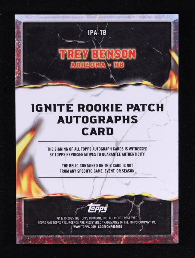 Trey Benson 2024 Topps Resurgence Ignite Rookie Patch Autographs Gold Power Surge #IPATB RC #27/50