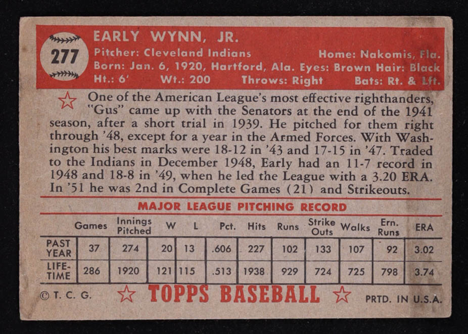 Early Wynn 1952 Topps #277
