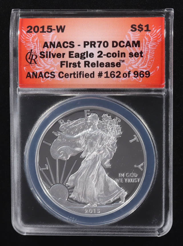 2015-W American Silver Eagle $1 Coin First Release #162/969 (ANACS Proof 70 Deep Cameo)