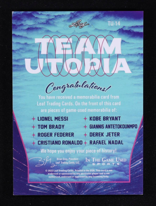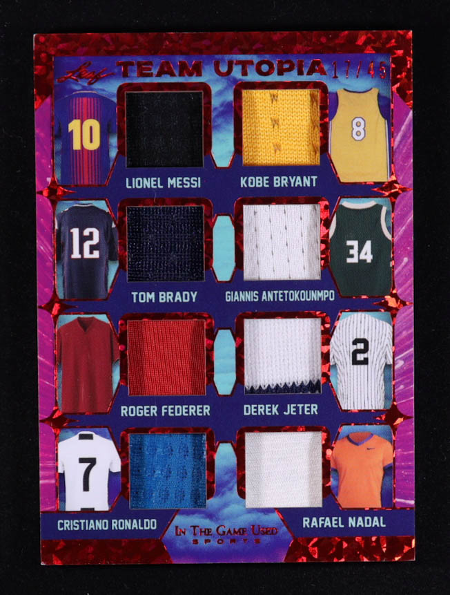 Lionel Messi / Kobe Bryant / Tom Brady / Giannis Antetokounmpo / Roger Federer / Derek Jeter / Cristiano Ronaldo / Rafael Nadal 2022 ITG Used Sports Team Utopia Materials Spectrum Red #TU14 #17/45