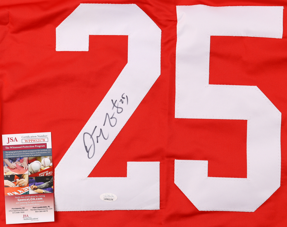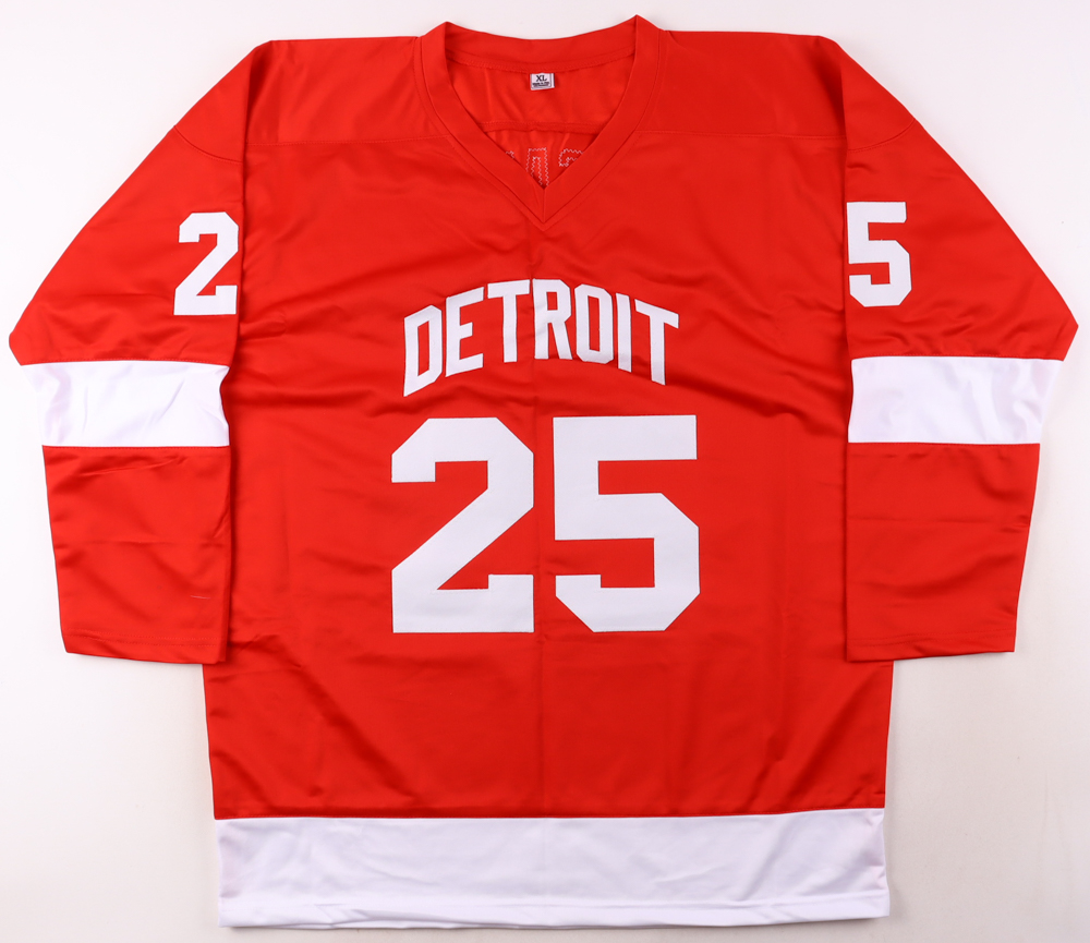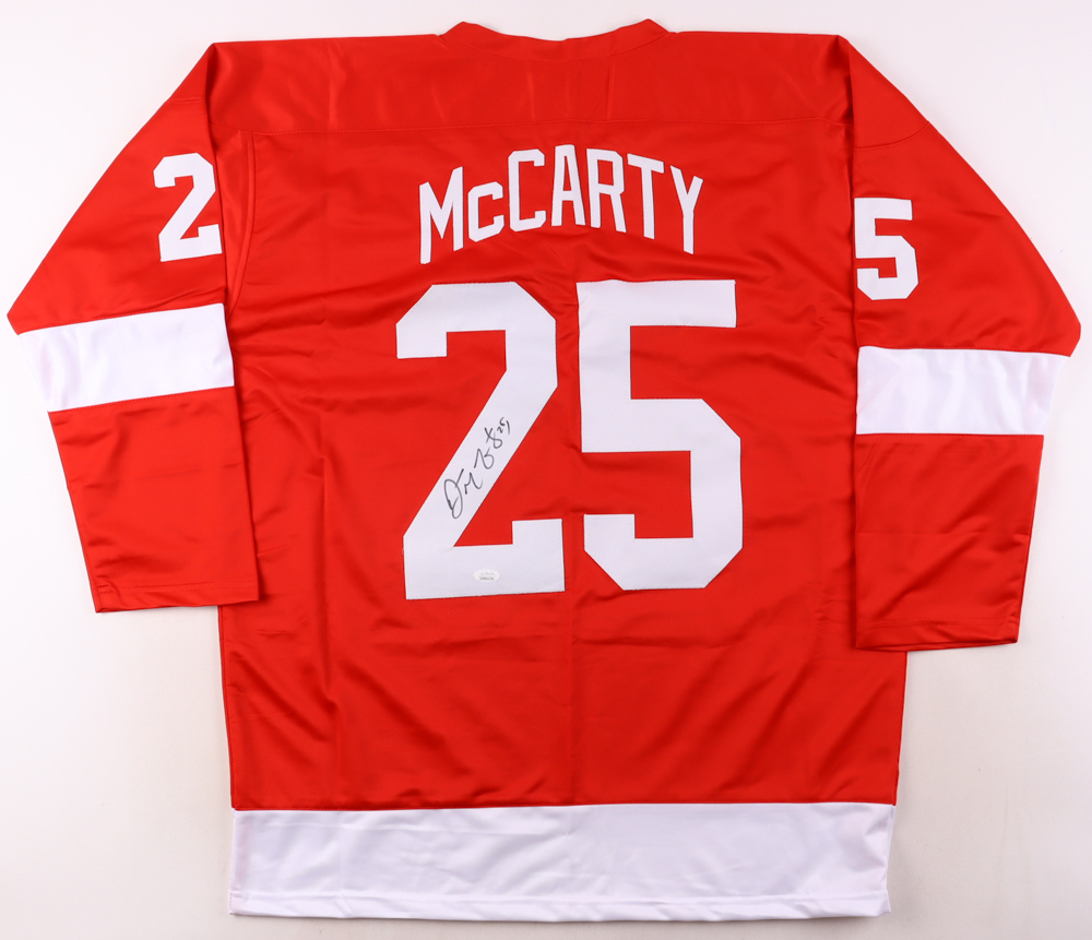 Custom style jersey with everything sewn on, size XL. Hand-signed by Darren McCarty.