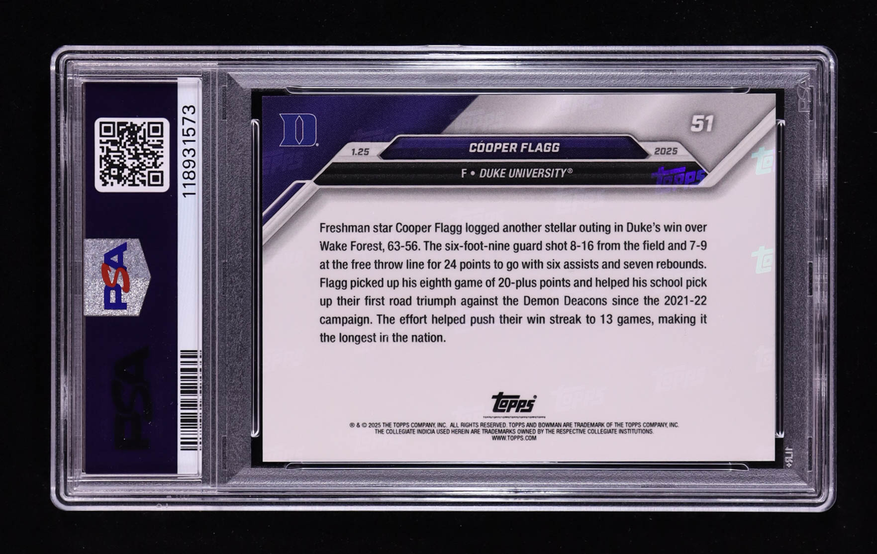 Cooper Flagg 2024-25 Bowman University Now #51 RC (PSA 10)