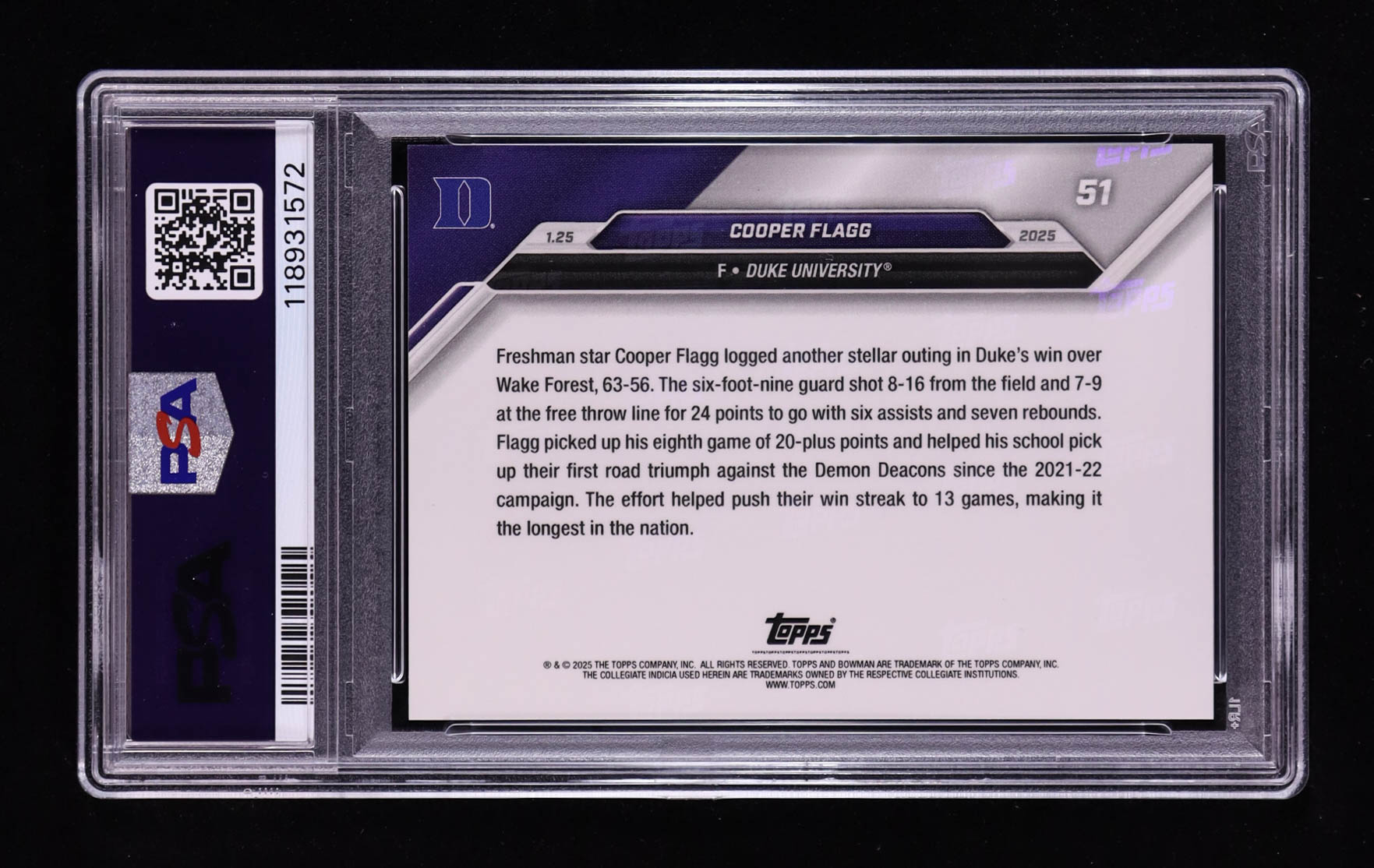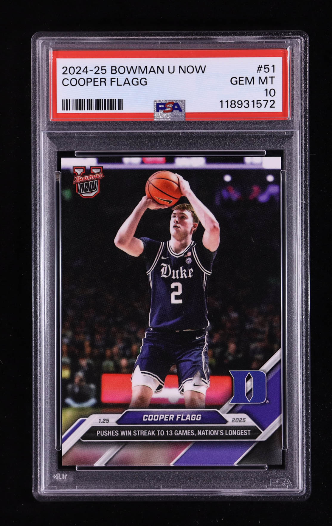 Cooper Flagg 2024-25 Bowman University Now #51 RC (PSA 10)