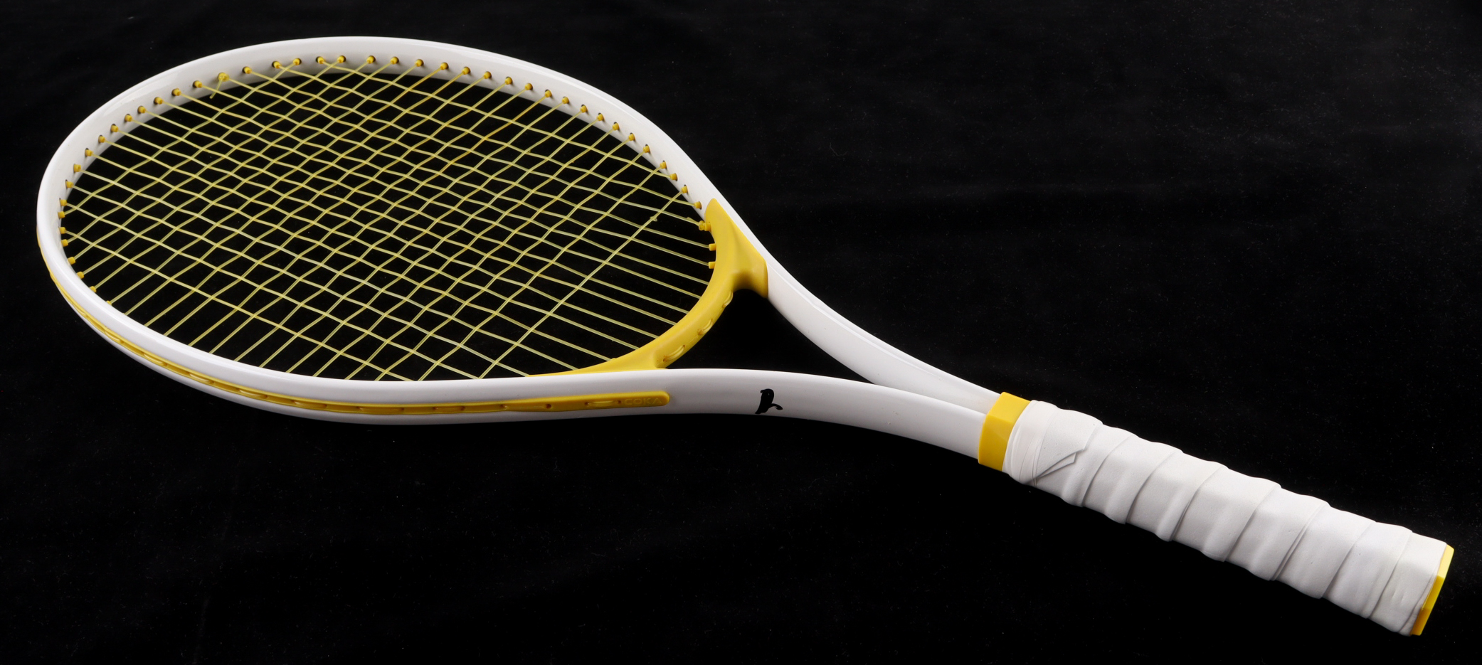 Full-size tennis racket has been hand-signed on the handle by Jannik Sinner.