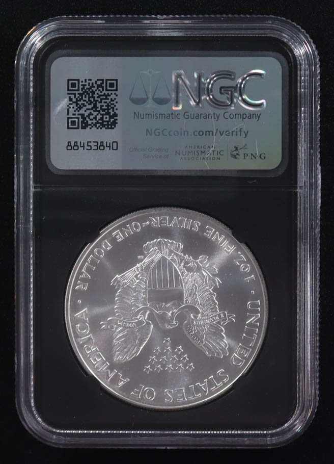 Mint Error 1986-(S) American Silver Eagle $1 Coin Struck at San Francisco Obverse Struck Thru Black Core Holder - Anna Escobedo Cabral Signed Label (NGC MS69)