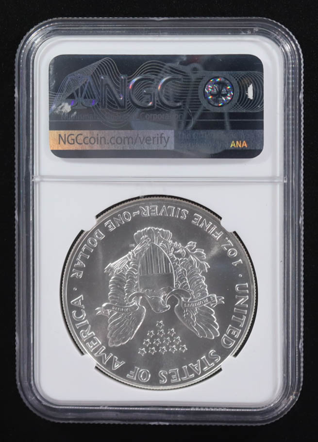 Mint Error 1987 American Silver Eagle $1 Coin Obverse Struck Through (NGC MS69)