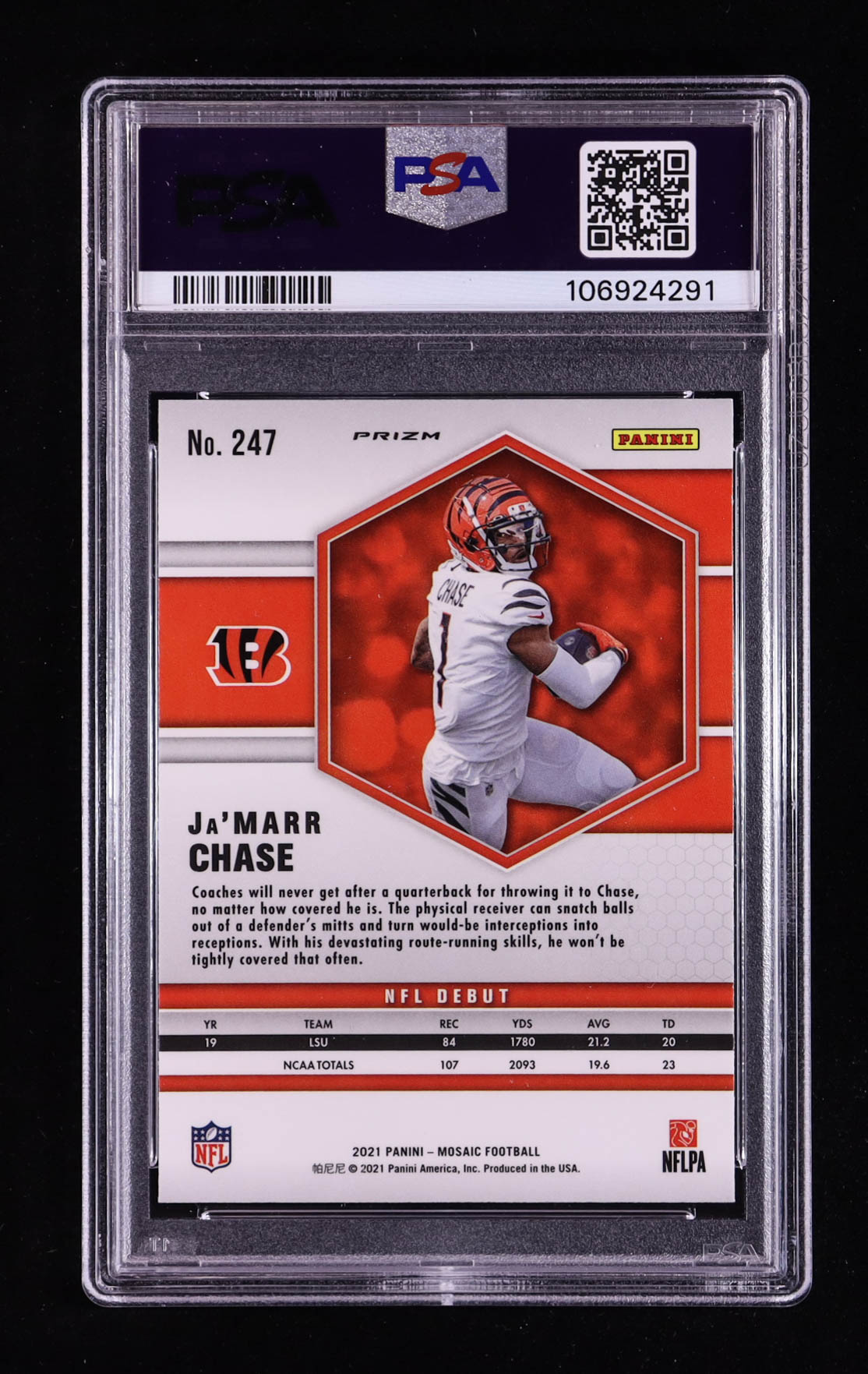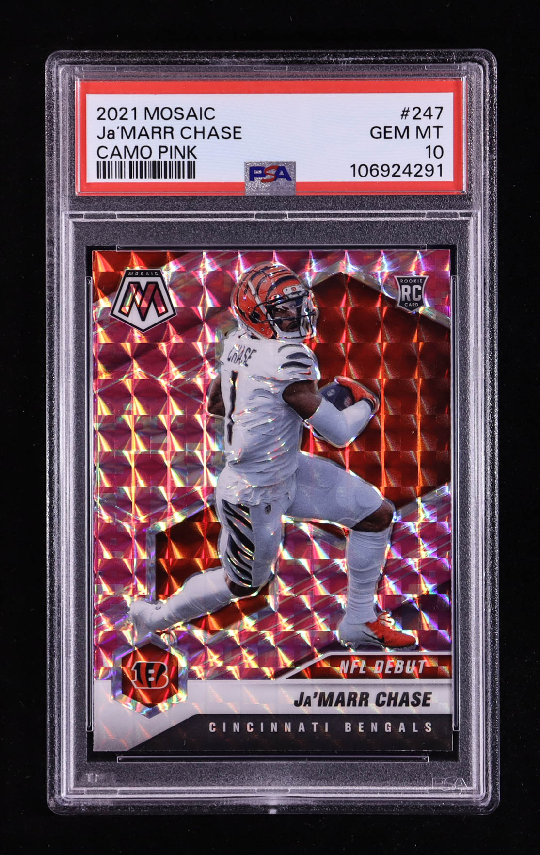 Ja'Marr Chase 2021 Panini Mosaic Mosaic Camo Pink #247 DEB RC (PSA 10)