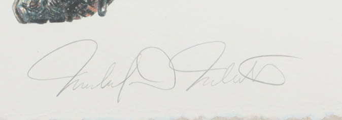 Art print measures approximately 20" x 24" in size and has been hand-signed Cal Ripken Jr. (Baltimore Orioles, HOF) as well as by the artist, Michael Mellett.