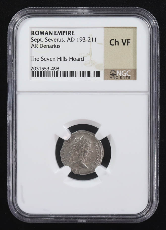 Septimius Severus (A.D. 193-211) Roman Empire AR Denarius Rome Mint Ancient Silver Coin - Seven Hills Hoard (NGC Ch VF)
