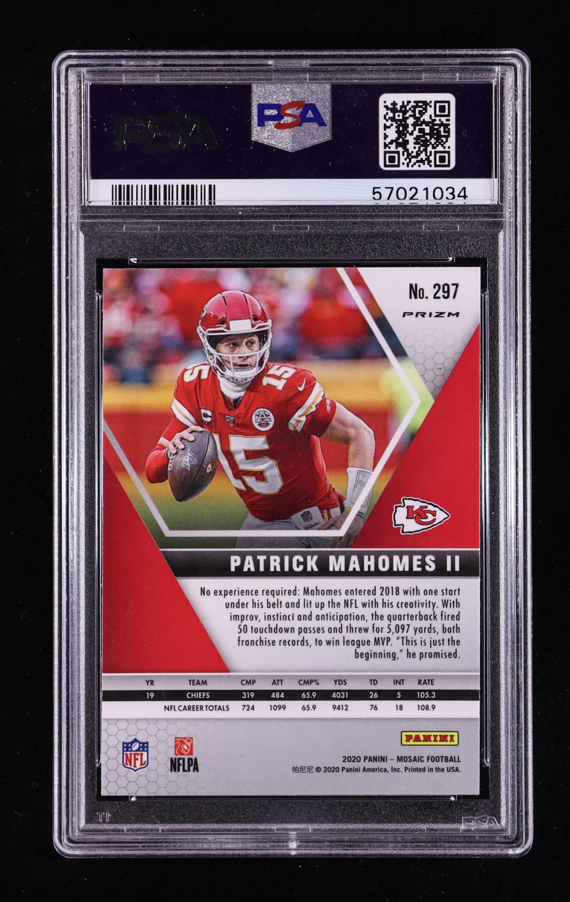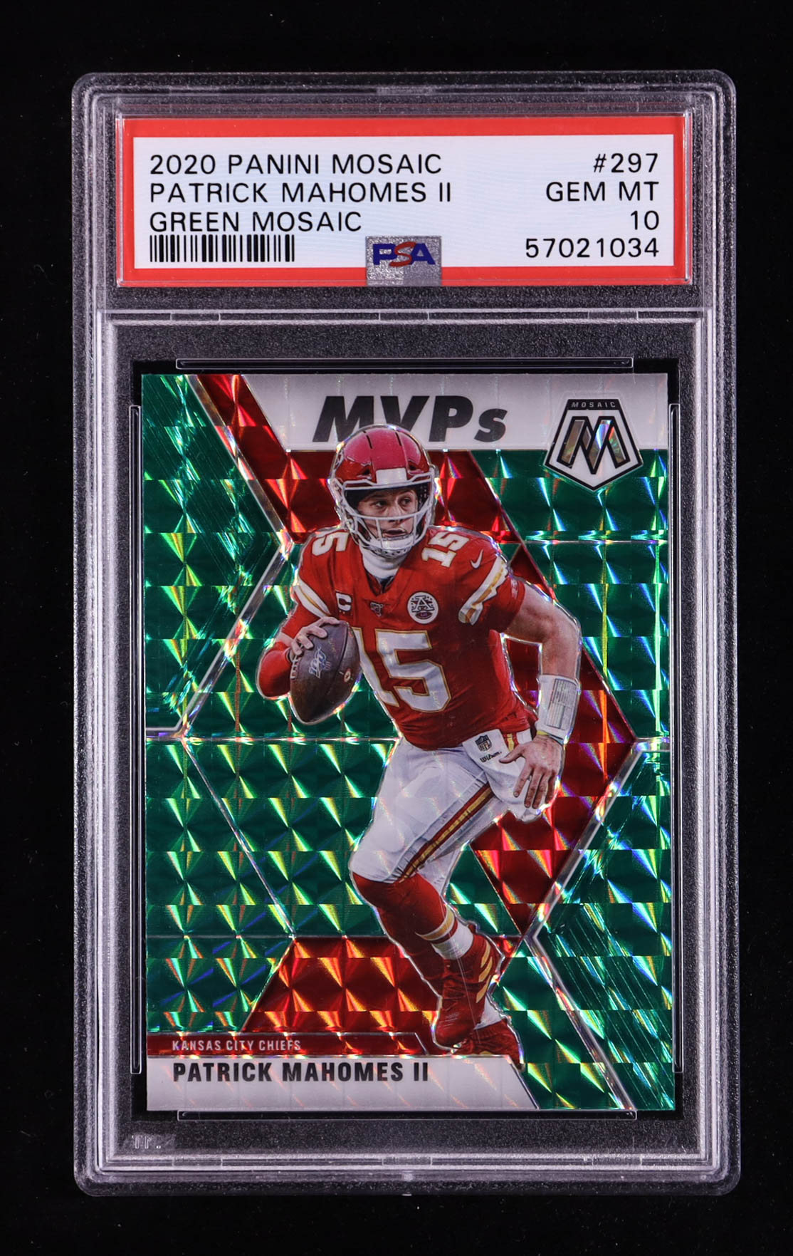 Patrick Mahomes II 2020 Panini Mosaic Mosaic Green #297 MVP (PSA 10)