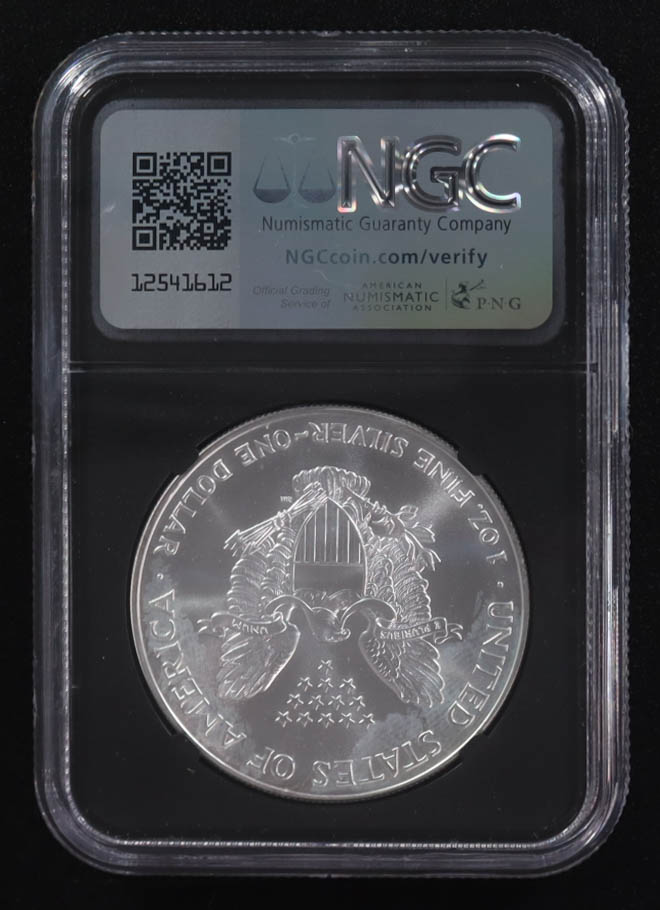 Mint Error 1998 American Silver Eagle $1 Coin Obverse Struck Thru Black Core Holder - Anna Escobedo Cabral Signed Label (NGC MS69)