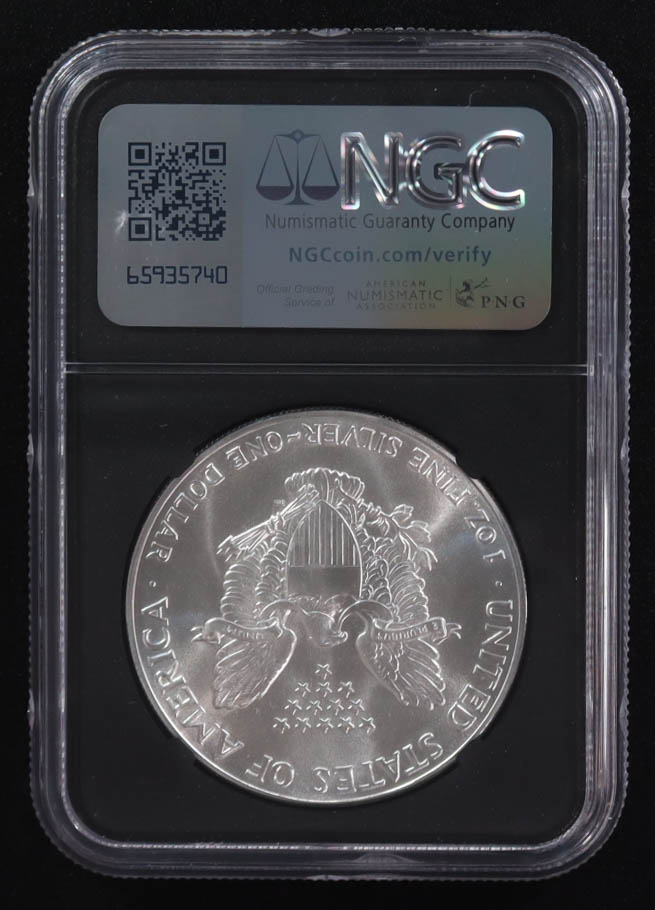 Mint Error 1986-(S) American Silver Eagle $1 Coin Struck at San Francisco Obverse Struck Thru Black Core Holder - Anna Escobedo Cabral Signed Label (NGC MS69)