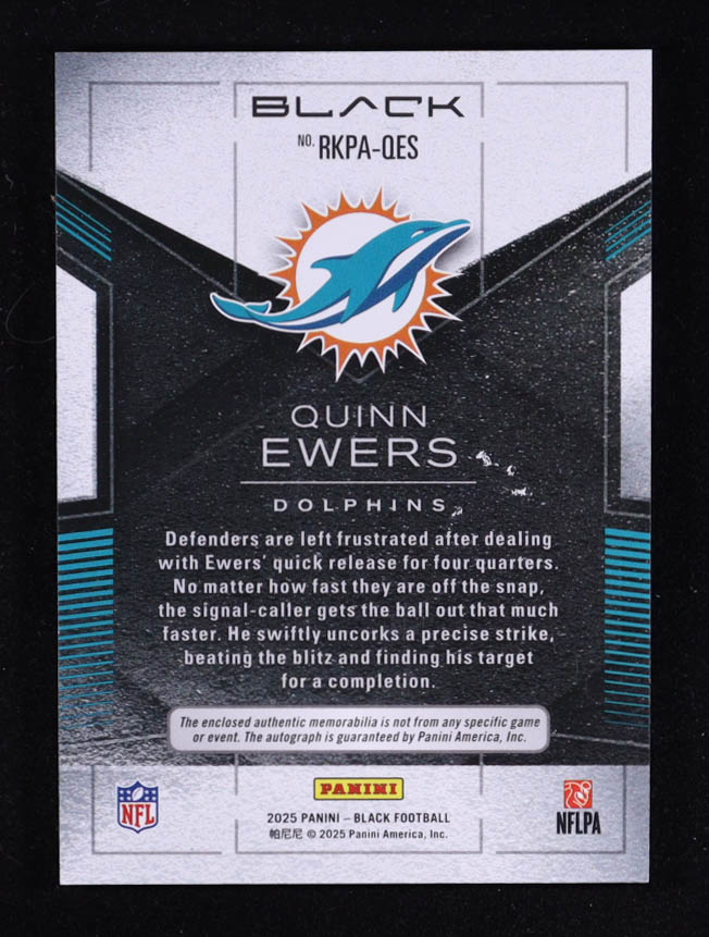 Quinn Ewers 2025 Panini Black Rookie Patch Autographs Citrine #26 RC #30/99