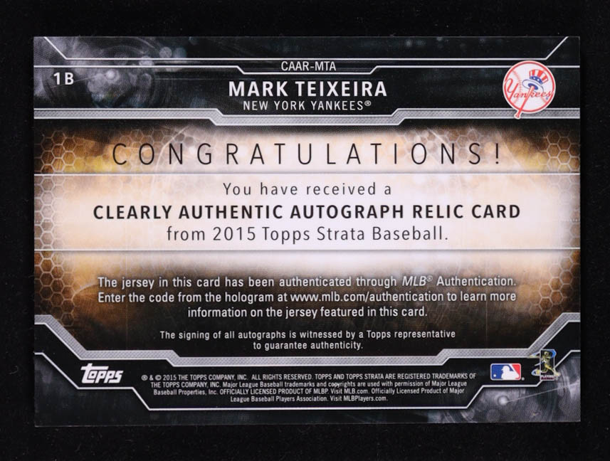 Mark Teixeira 2015 Topps Strata Clearly Authentic Autograph Relics #CAARMTA