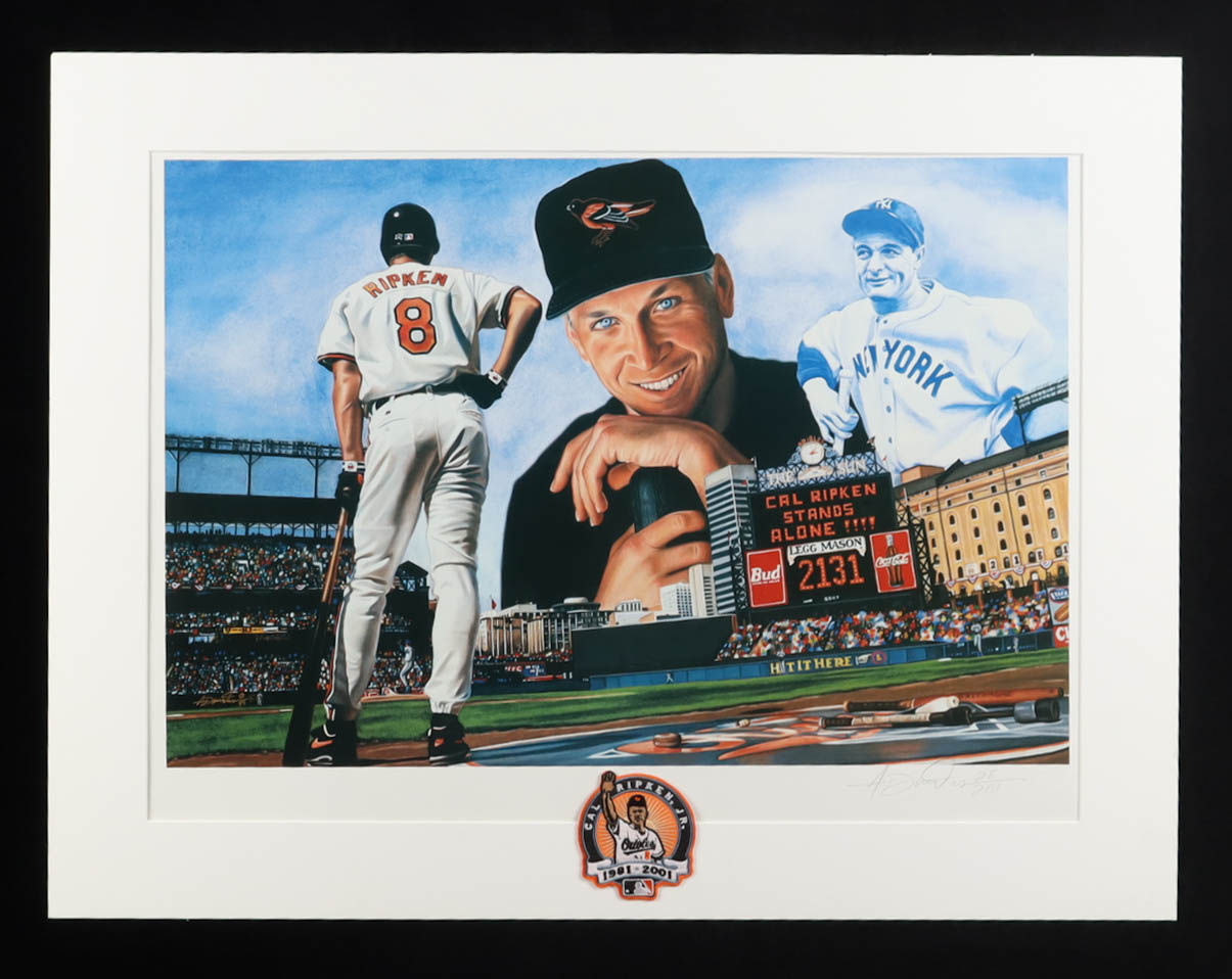 Cal Ripken Jr. LE Baltimore Orioles Custom Matted Anthony Douglas Art Print with Ripken Patch