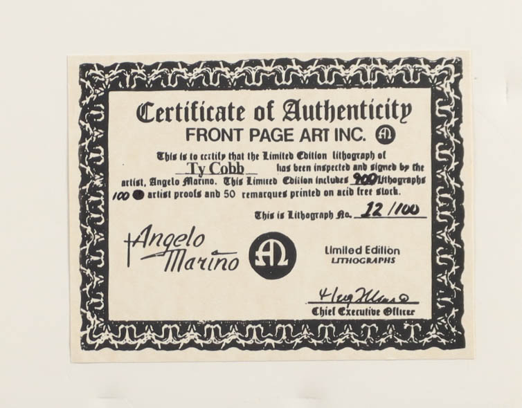 Ty Cobb LE Detroit Tigers Custom Matted Angelo Marino Art Print with Tigers Pin