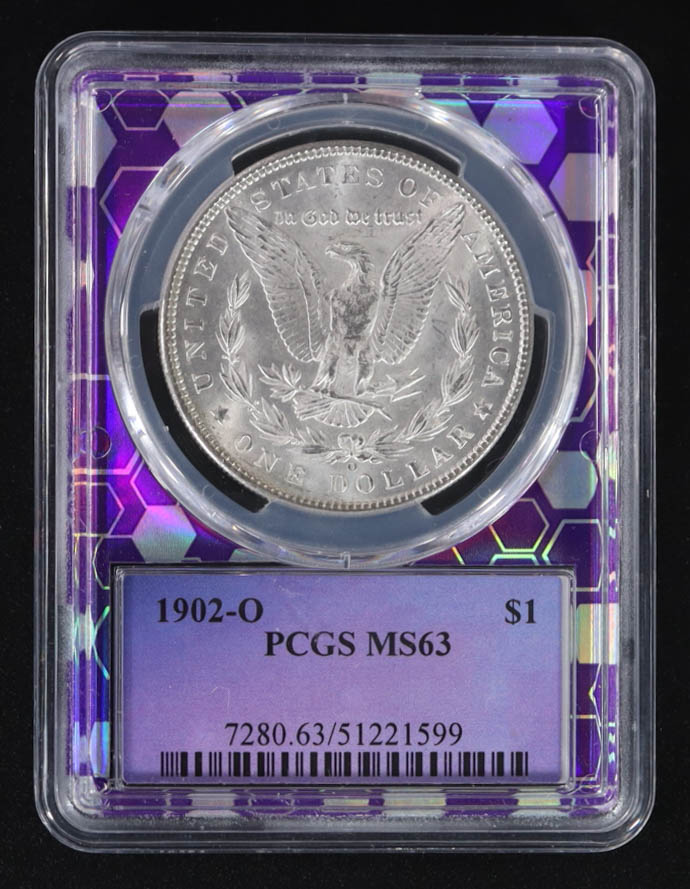 1902-O Morgan Silver Dollar - Holographic Bee Frame Holder (PCGS MS63)