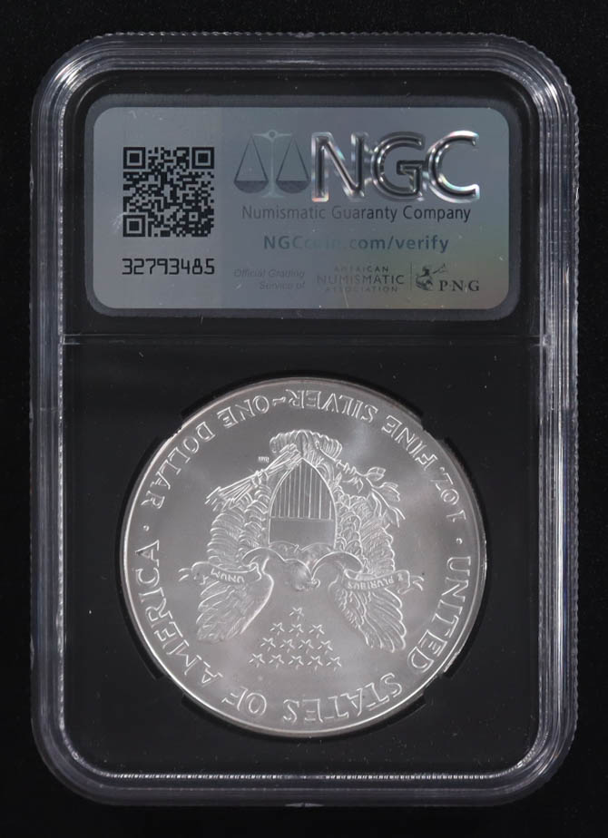 Mint Error 1997 American Silver Eagle $1 Coin Obverse Struck Thru Black Core Holder - Anna Escobedo Cabral Signed Label (NGC MS69)