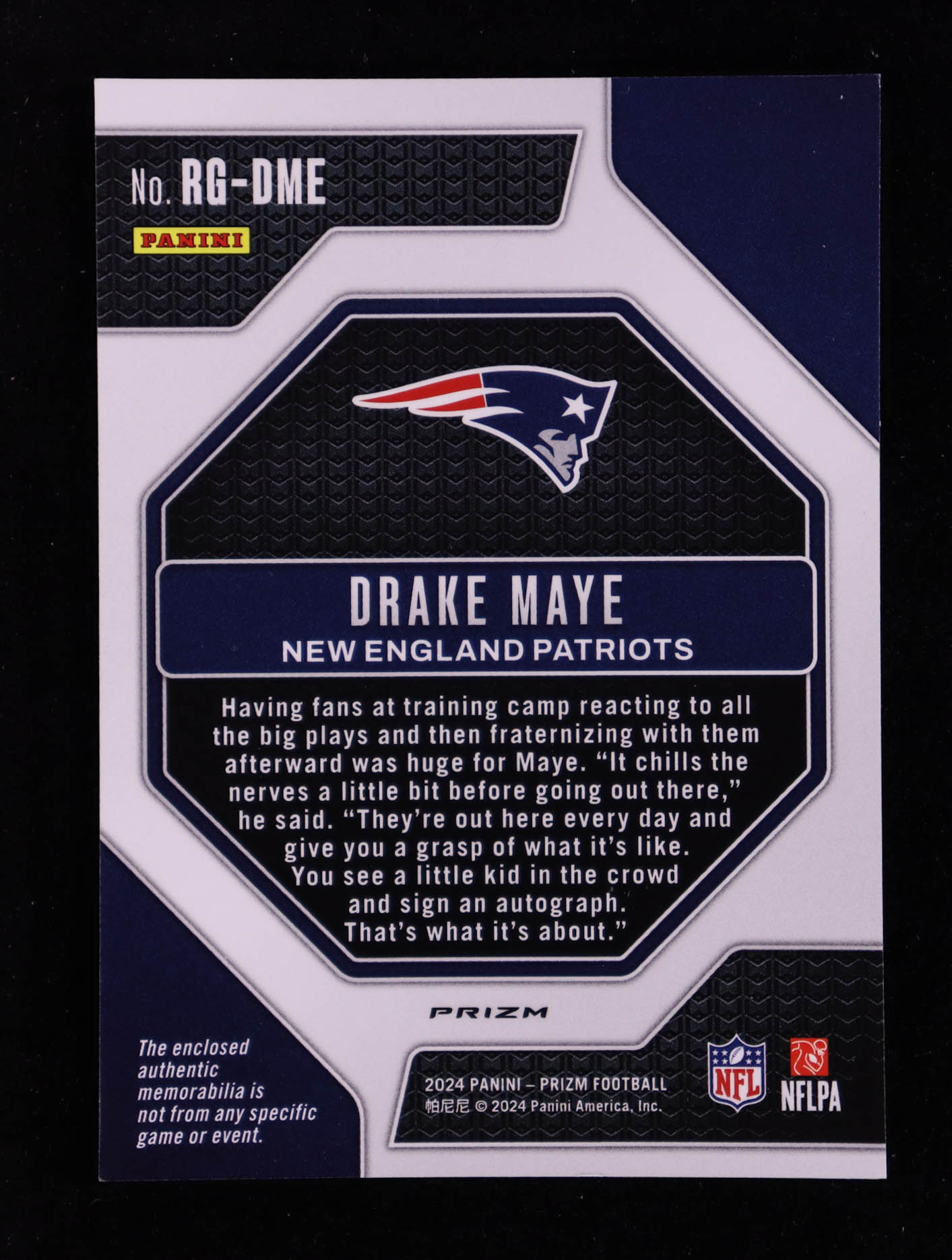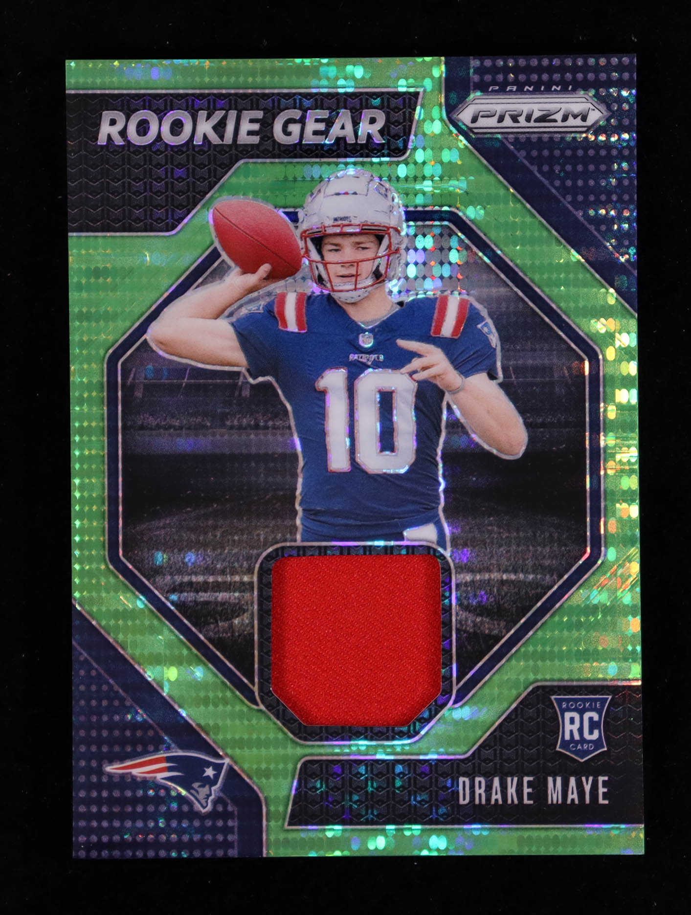 Drake Maye 2024 Panini Prizm Rookie Gear Neon Green Pulsar #6 RC