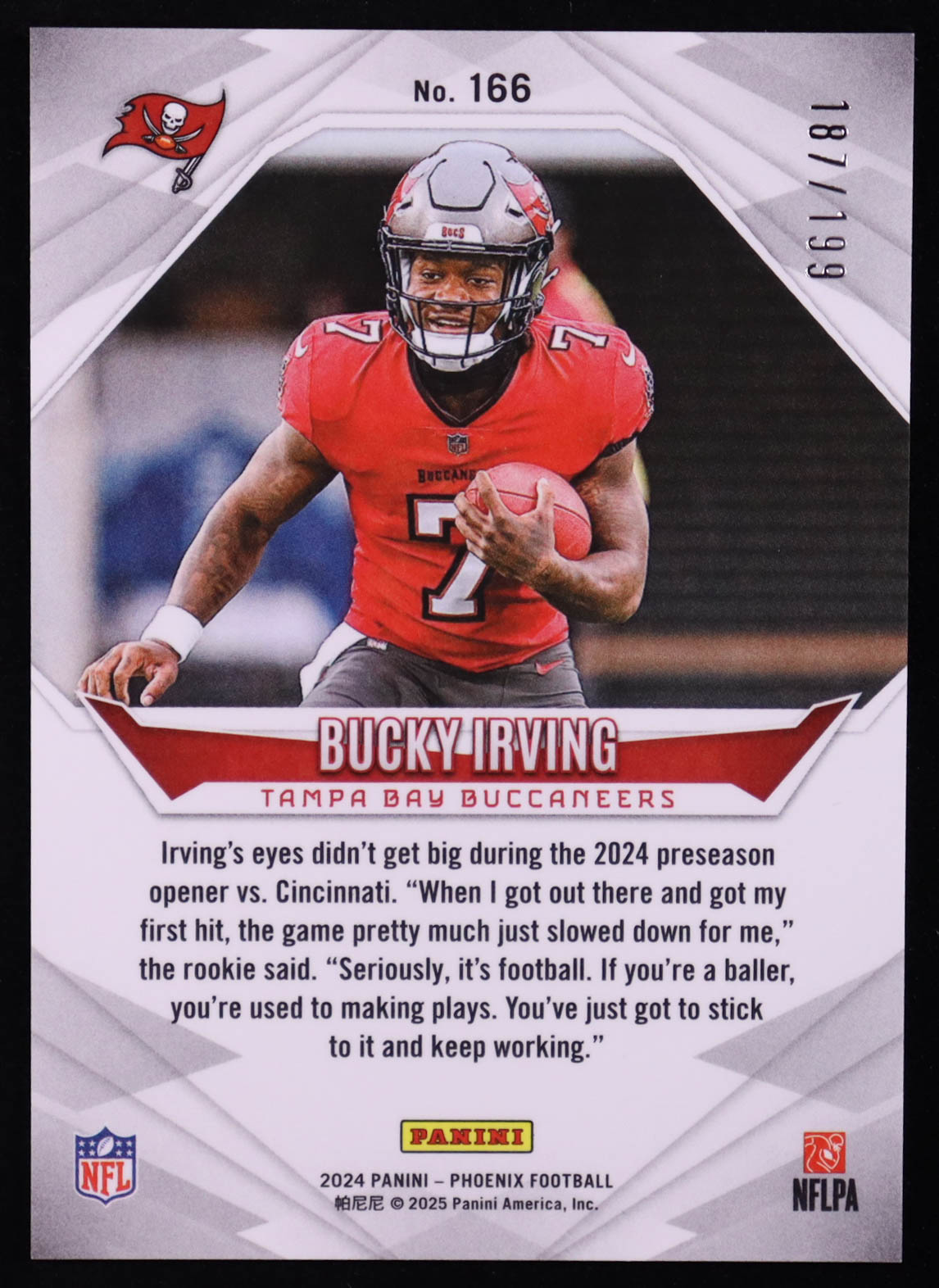 Bucky Irving 2024 Panini Phoenix Red Lazer #166 #187/199 RC