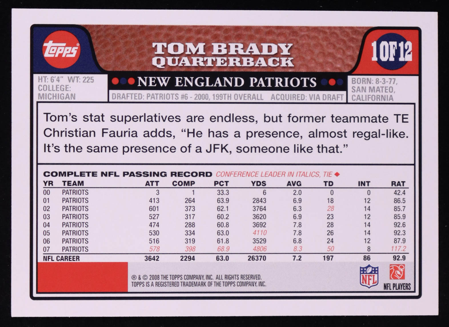 Tom Brady 2008 Patriots Topps #1