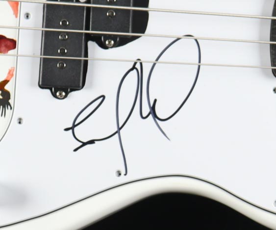 Full-size Glarry electric guitar measures approximately 39" in length and has been hand-signed on the pick-guard by Stefan Lessard.
