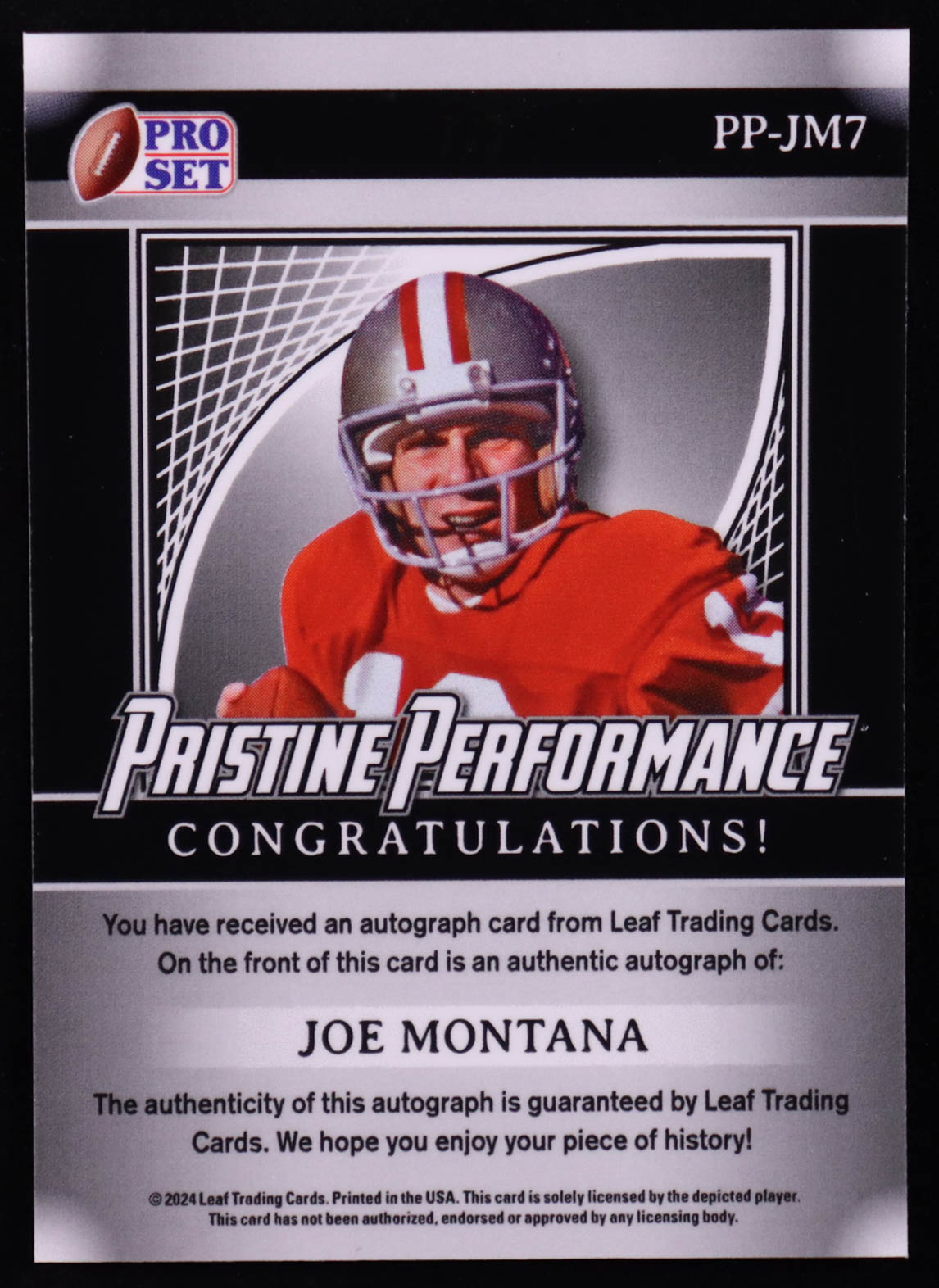 Joe Montana 2024 Leaf Joe Montana Legacy Pristine Performance Prismatic Pink #PPJM7 #7/7