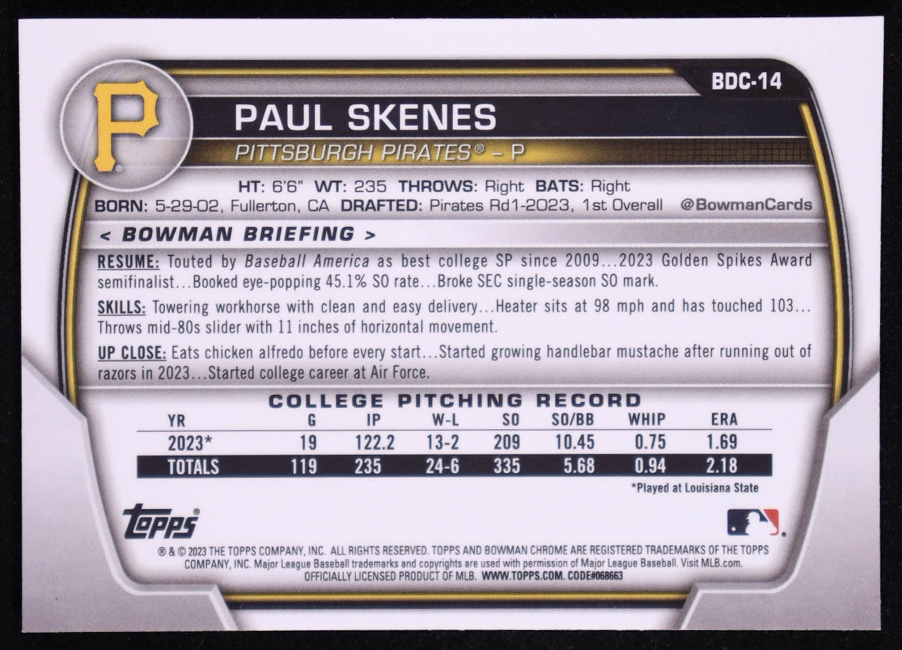 Paul Skenes 2023 Bowman Chrome Draft Sapphire #BDC14