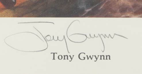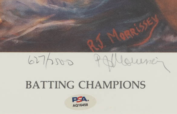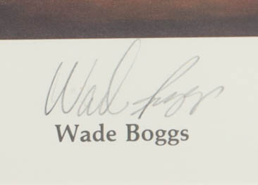 Custom framed display measures approximately 23" x 27" in size and features an art print from RJ Morrisey, that has been hand-signed by Tony Gwynn (D.2014, San Diego Padres, HOF) and Wade Boggs (Boston Red Sox, HOF). Please note that the item is Limited Edition # 627 / 2510.