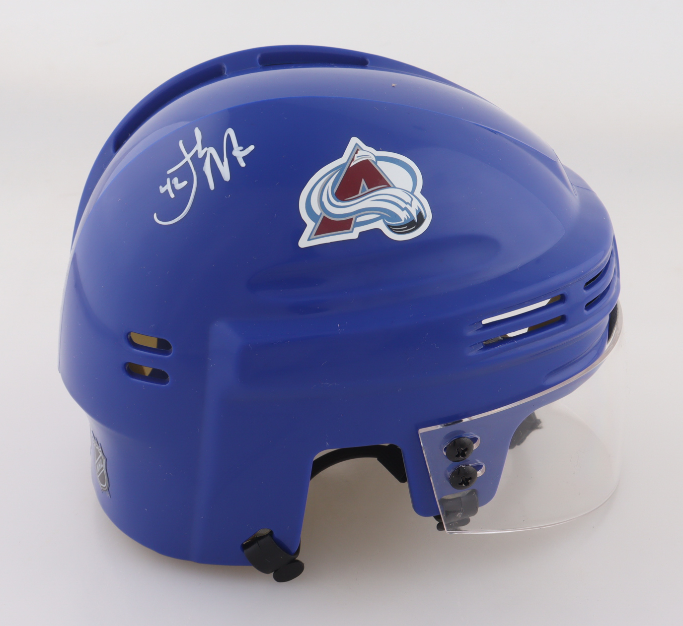 Colorado Avalanche mini hockey helmet has been signed by Josh Manson.
