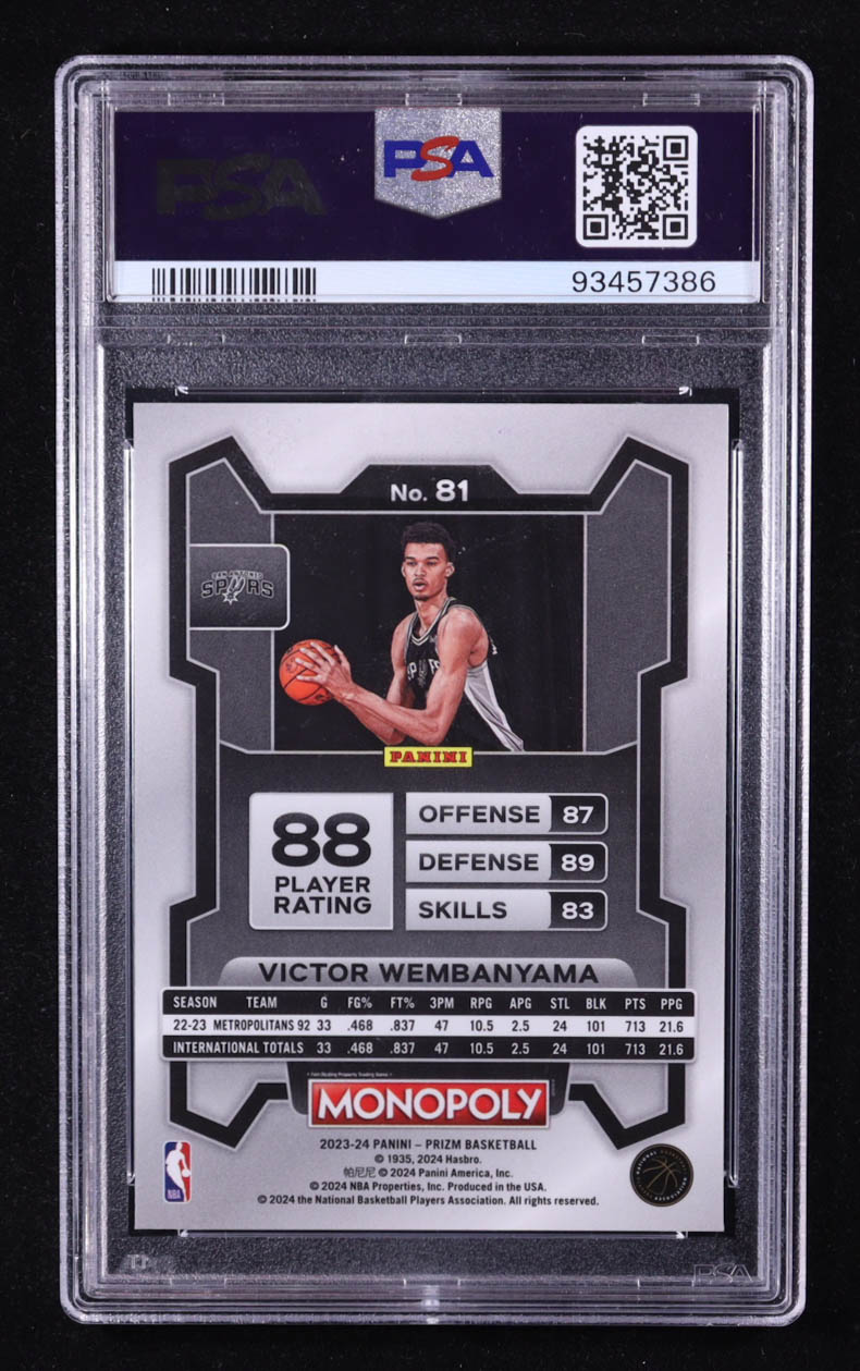 Victor Wembanyama 2023-24 Panini Prizm Monopoly #81 RC (PSA 10)