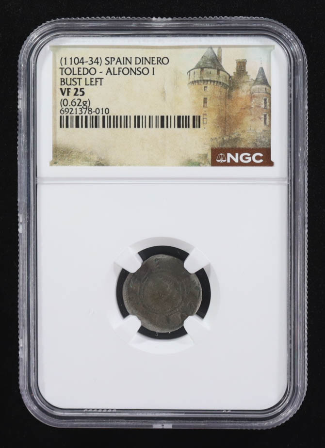 Alfonso I (1104-1134) Spain Billon Dinero Toledo Mint Medieval Coin (NGC VF25)